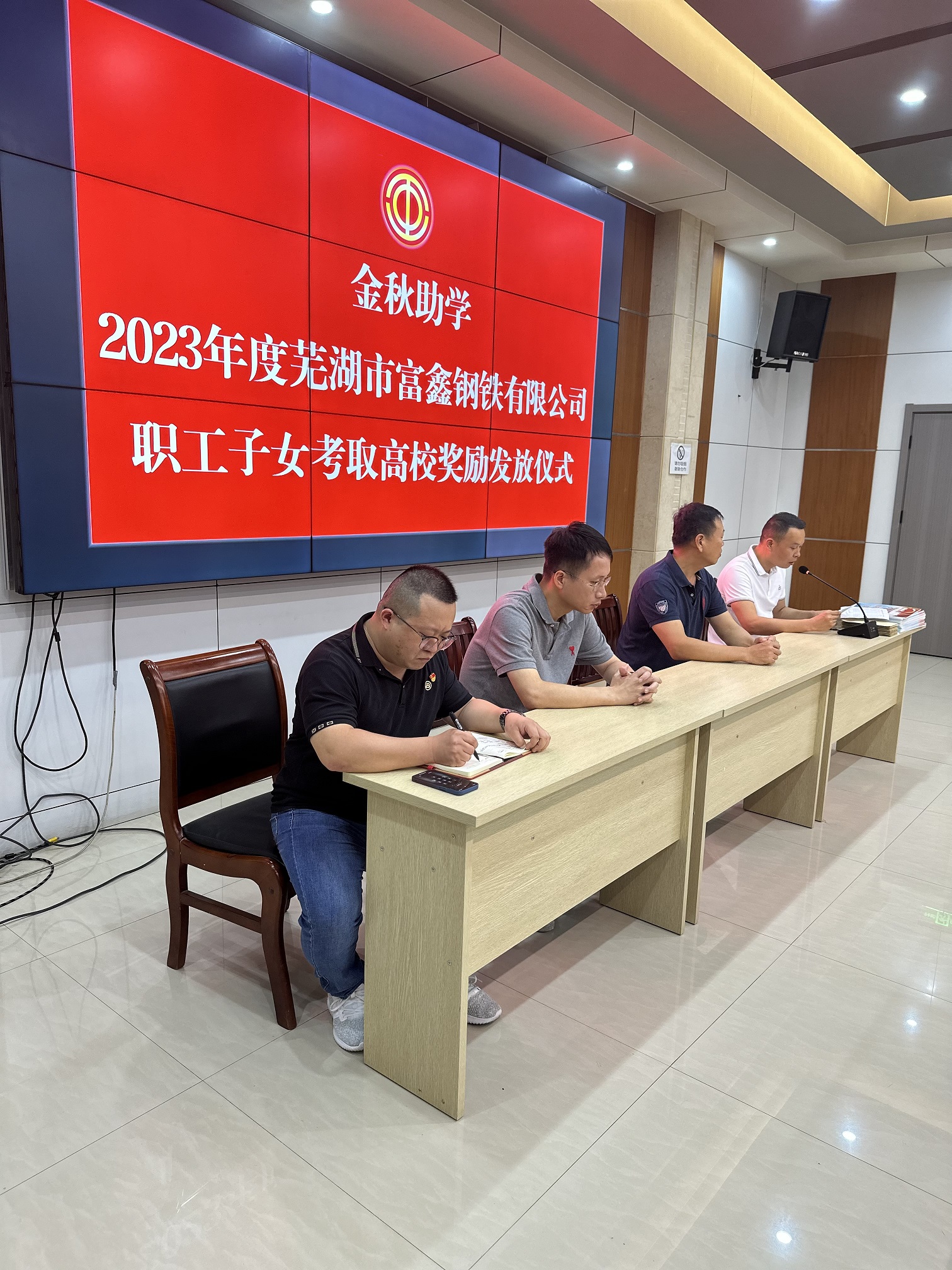 金秋助學。蕪湖市富鑫鋼鐵有限公司為2023年度考取高校的14名職工子女每人發放2000元助學資金。經統計,自公司職工子女...